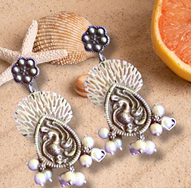 Traditional Oxidized Ethnic Silver Plating Peacock Drop Earrings For Women And Girl